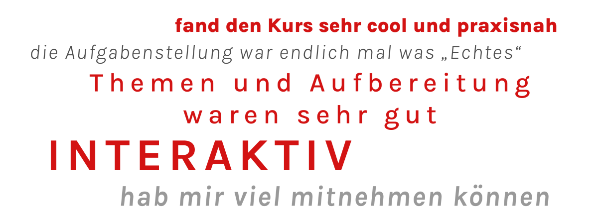 Diese Mischung aus Theorie und Praxis ist bei der Gruppe gut angekommen, wie das Feedback zeigt (hier einige Beispiele).