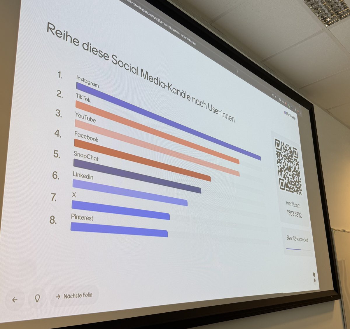 Dann war da natürlich noch das große Projekt: In sechs Kleingruppen durften sich die Studierenden an einer Content Strategie versuchen – samt Analyse, Kanalstrategie, Redaktionsplan und Erfolgsmessung. Am Ende der Vorlesung gab’s einen Pitch vor den (theoretischen) Auftraggeber:innen.