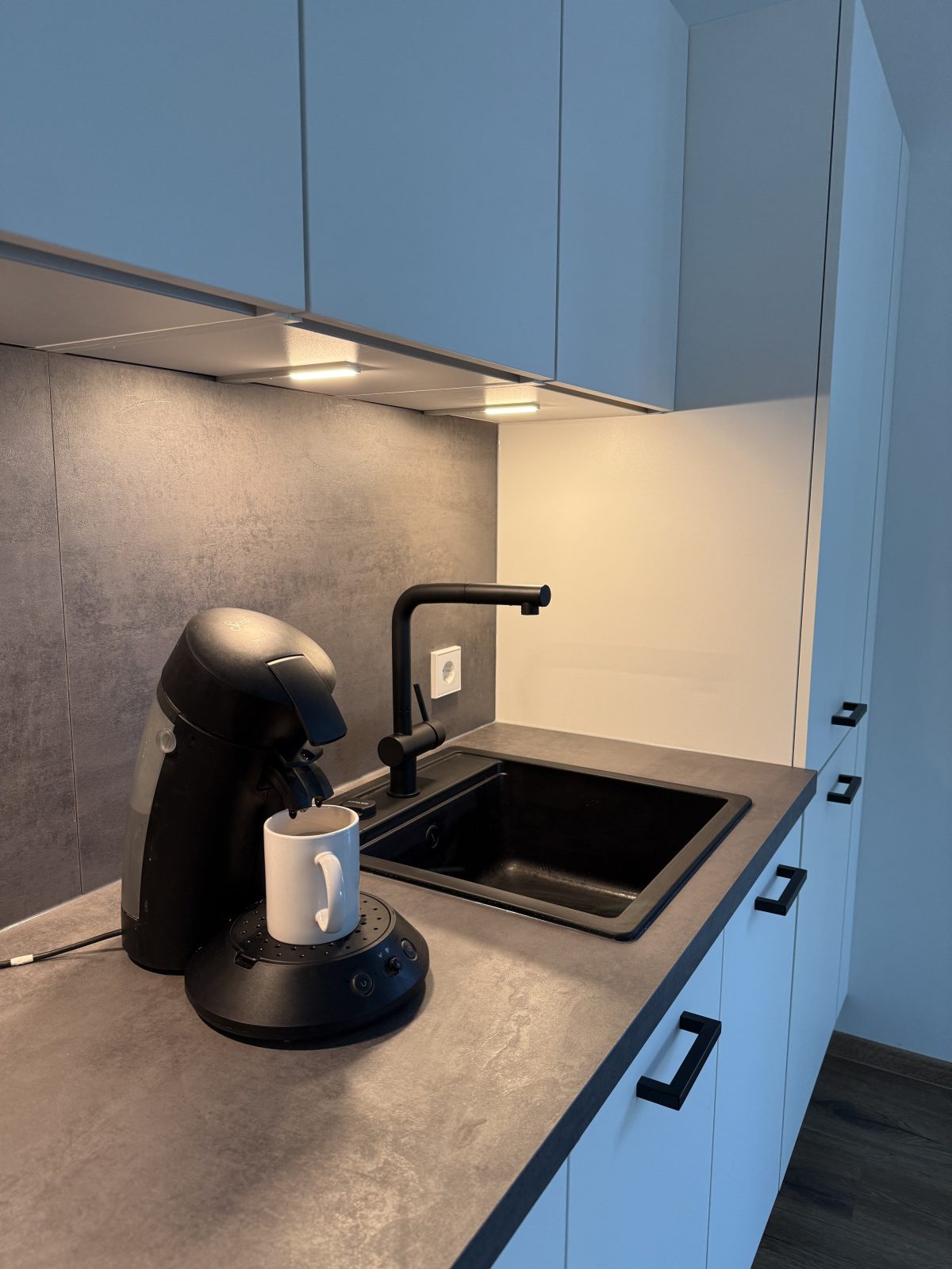 • Nach dem Aufstehen habe ich mir einen Kaffee aus der Baustellen-Kaffeemaschine gegönnt – großartig bei der Ruhe.